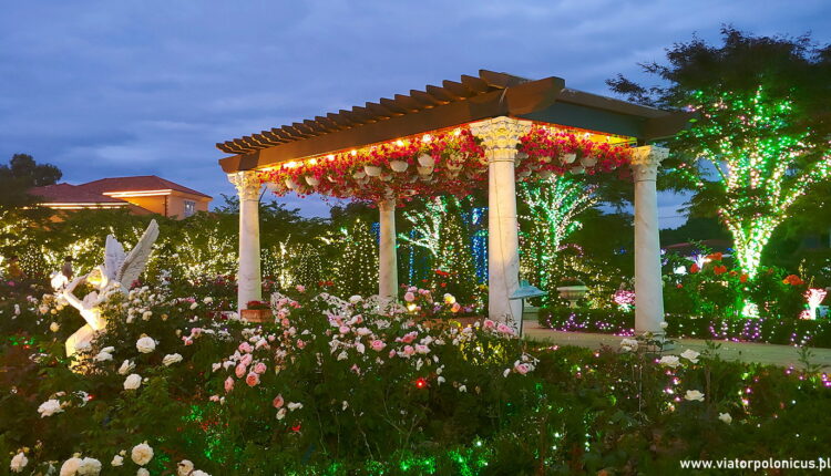 Do tego ogrodu wybraliśmy się po południu na początku czerwca. My to znaczy, ja z mężem i dwuletnią córką kuzynki. Jak widać większość zdjęć jest zrobiona, jak było jeszcze jasno. Mimo, że było mnóstwo podświetlonych kwietników, figur i rzeźb zaraz po 19.00, to na efekt przy ciemnym niebie nie zaczekaliśmy. Ze względu na małe dziecko. Przyjechaliśmy koło 16.00, zrobiliśmy pierwszą rundę, później poszliśmy do restauracji i po drugiej rundzie, około 20.00 pojechaliśmy już z powrotem do domu.